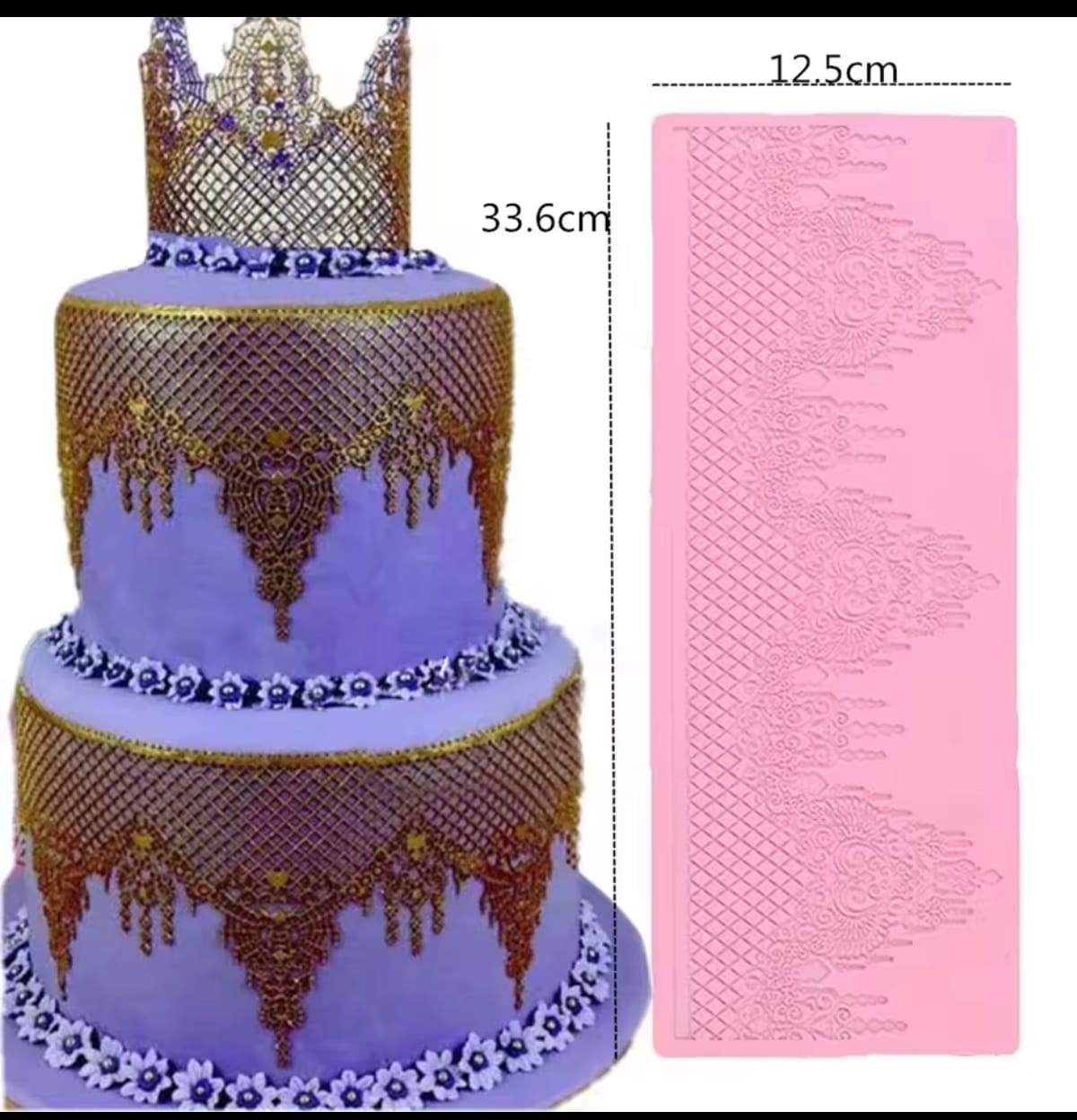 This premium lace pattern silicone mat is perfect for creating elegant and professional-looking cake decorations. Designed to produce intricate lace-style patterns, it is ideal for decorating wedding cakes, engagement cakes, anniversary cakes, and luxury celebration cakes.